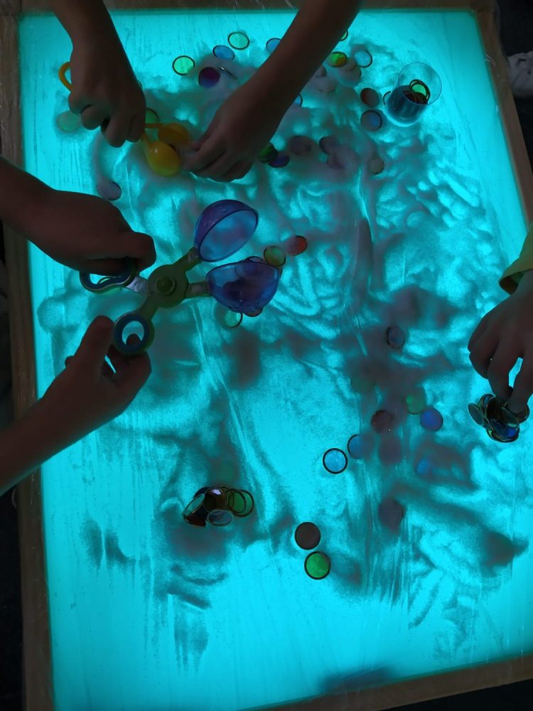 La mesa de luz es un recurso educativo que llama mucho la atención de los niños ya que se trata de una superficie translucida con una base luminosa que permite a estos experimentar y aprender a través de los sentidos y el juego.